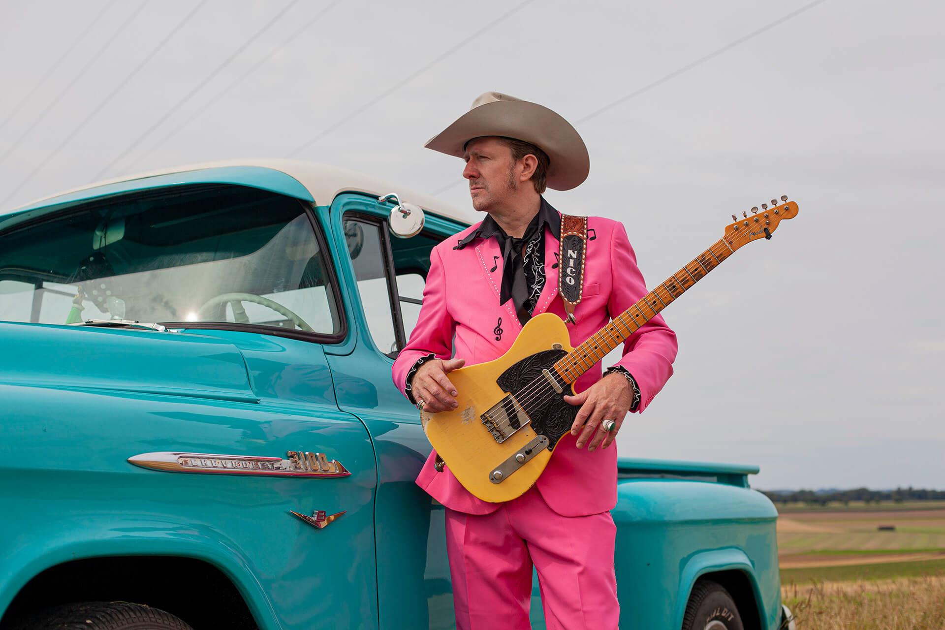 His albums „With Hee Haw & Friends“ and „Time Traveller“ were created in collaboration with outstanding musicians from Munich and Austin, Texas. He also recorded duets with Wren Stewart (daughter of country legend Wynn Stewart) and John Howie Jr. (Two Dollar Pistols). During his long stay in the USA in 2018 in Austin Texas and Nashville Tennessee, he gave radio interviews for traditional stations like KOOP Radio and shared stage with some of his all time country heroes, e.g. The Derailers (Broken Spoke), Dale Watson (Continental Club) and Chris Scruggs (Robert’s Westernworld, Nashville).